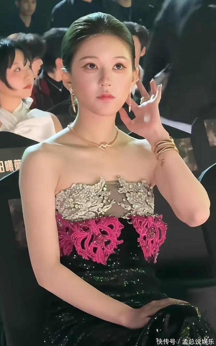 内场换黑丝绒抹胸裙,低盘发配流苏耳饰,C位领奖气场全开。她外场粉裙选款太绝,柔缎面料贴身穿不紧绷,走动时裙摆晃起来灵动俏皮,高开衩露腿分寸刚好,甜而不腻,珠宝简约点缀脖颈手腕,和裙子搭得刚刚好,奢华不张扬。内场黑裙走的极简风,没多余装饰,全靠面料的高级感,低盘发去掉甜腻,看着大气沉稳,淡定劲儿和造型超配。